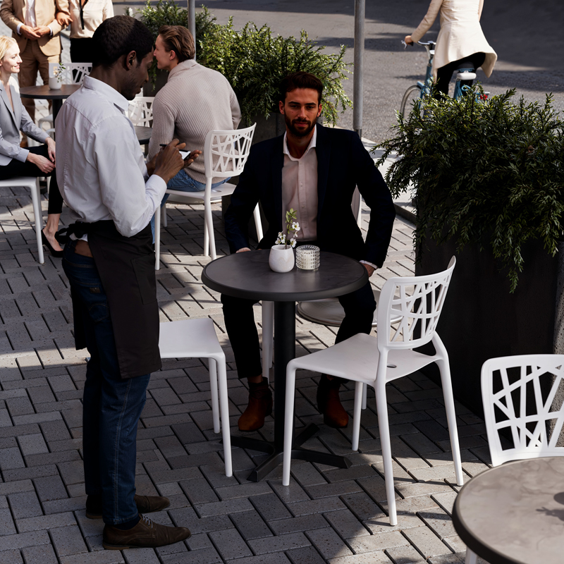 Ferrea bordet med en rund Ø85 cm bordsskiva finns med en rad olika valmöjligheter. Ferrea bordet finns i olika höjder samt med olika färgval.